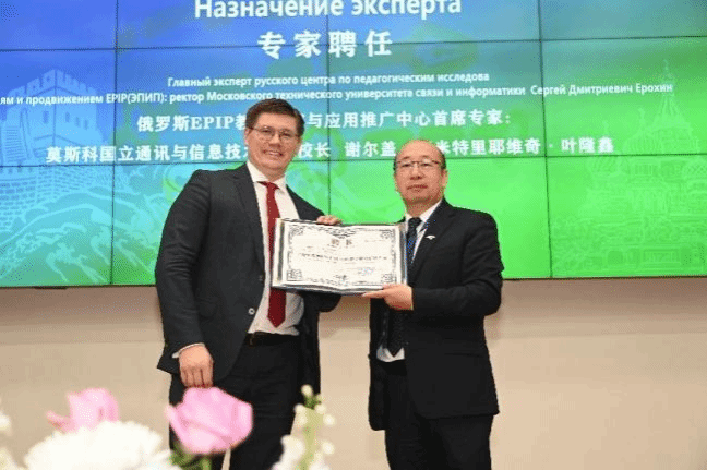 在专家聘任环节,罗延安为俄罗斯莫斯科国立通讯与信息技术大学校长谢尔盖颁授“俄罗斯EPIP教学研究与应用推广中心首席专家”聘书,中国及俄罗斯圣彼得堡国立大学等机构的5位专家获聘“EPIP推广应用专家”,进一步强化了EPIP国际合作的人才支撑。