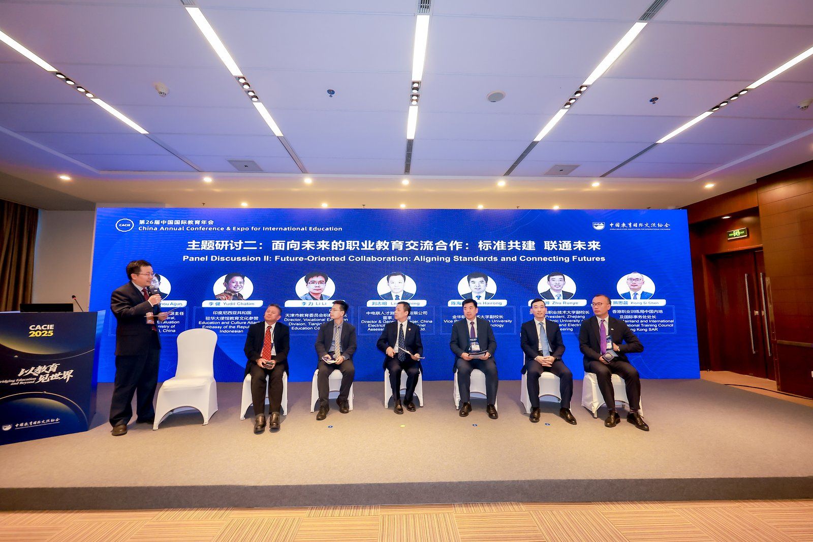 第26届中国国际教育年会以“以教育见世界”为主题,主宾国为新西兰,年会包括全体大会、平行论坛、合作洽谈和教育展览等百余场双多边活动。在“全球视野下的职业技术教育创新发展论坛”活动中,职业教育相关的各国专家加强了交流、打造了成果、凝聚了共识,我校作为世界职业技术教育发展联盟副主席单位、全球职业技术教育发展智库总部所在单位,为加强职业教育国际交流合作做出了重要贡献,承办此次论坛,更是进一步体现了我校落实“互学互鉴、共建共享”重要要求、服务职业教育国际交流合作的使命担当。
